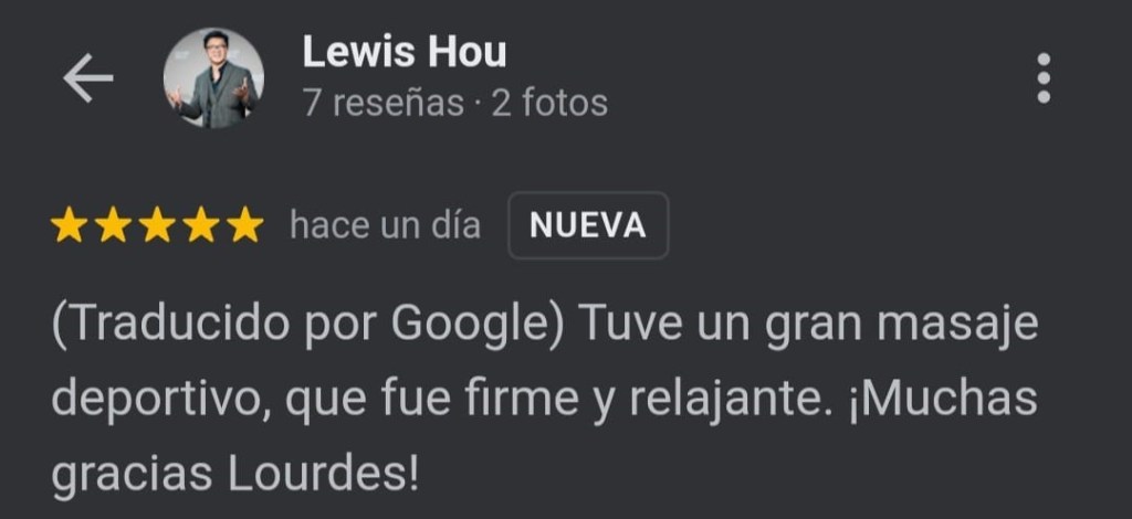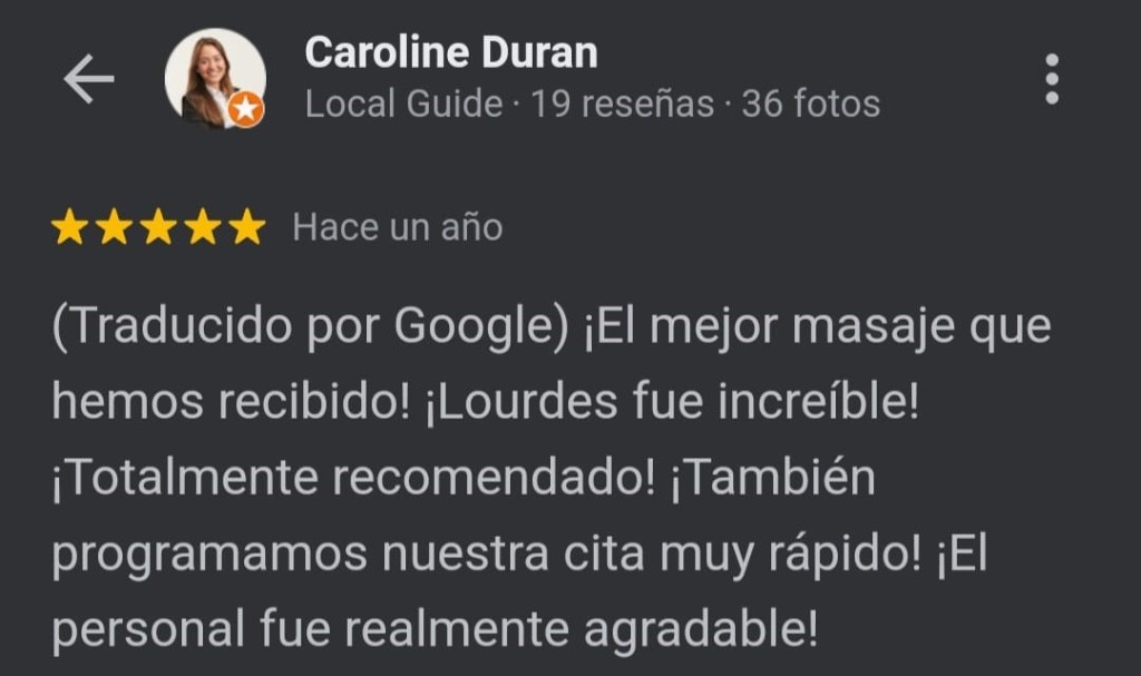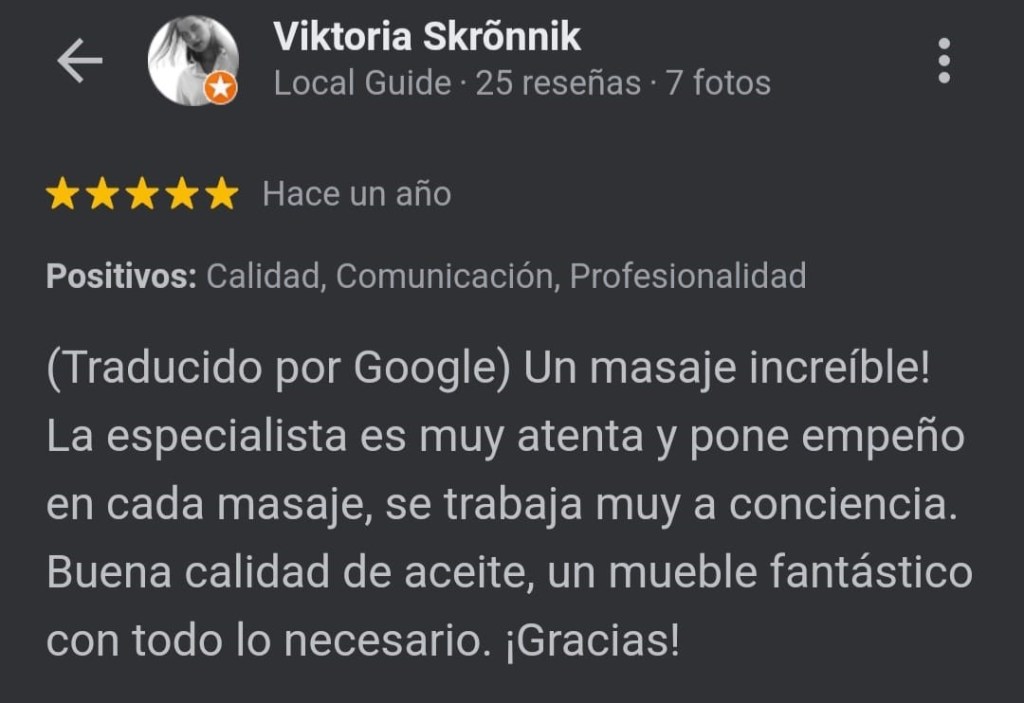 Deja tu reseña en Google y valora tu tratamiento a manos de QuiroRelax Tenerife.